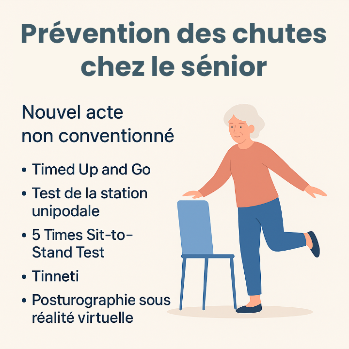 À partir de ce mois-ci, je propose un bilan spécifique de prévention des chutes destiné aux personnes âgées ou présentant une baisse de confiance dans l’équilibre.