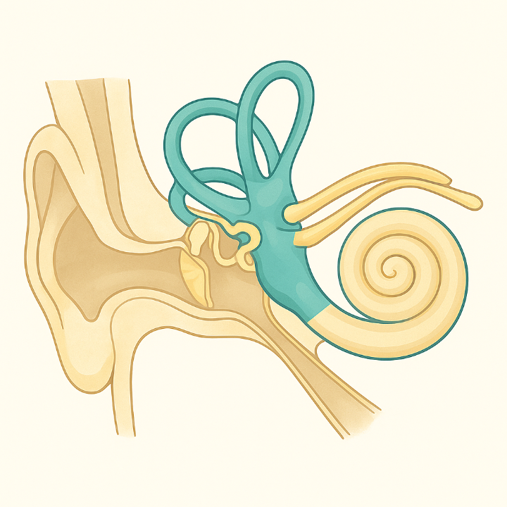 Pour comprendre le VPPB, rappelons l’anatomie de l’oreille interne. Celle-ci contient le système vestibulaire qui gère l’équilibre. Ce système comprend deux capteurs linéaires (l’utricule et le saccule, sensibles à la gravité) et trois canaux semi-circulaires remplis de liquide . Ces trois canaux sont orientés selon les trois plans de l’espace (horizontal, antérieur/supérieur et postérieur) et il y en a trois de chaque côté de la tête, soit six en tout. Dans chaque canal, un segment dilaté (l’ampoule) contient une cupule gélatineuse surmontée de cellules ciliées (« poils » sensoriels). Lorsque la tête bouge, le liquide (endolymphe) se déplace par inertie et fait plier la cupule, ce qui active les cellules ciliées. Cela envoie alors au cerveau un signal sur le mouvement ou la position de la tête . Ces trois canaux détectent donc respectivement les rotations dans les trois dimensions : un canal horizontale (latéral) capte les mouvements de rotation horizontaux (dans le plan du sol), et les deux canaux antérieur/postérieur réagissent aux rotations verticales ou en avant/en arrière .